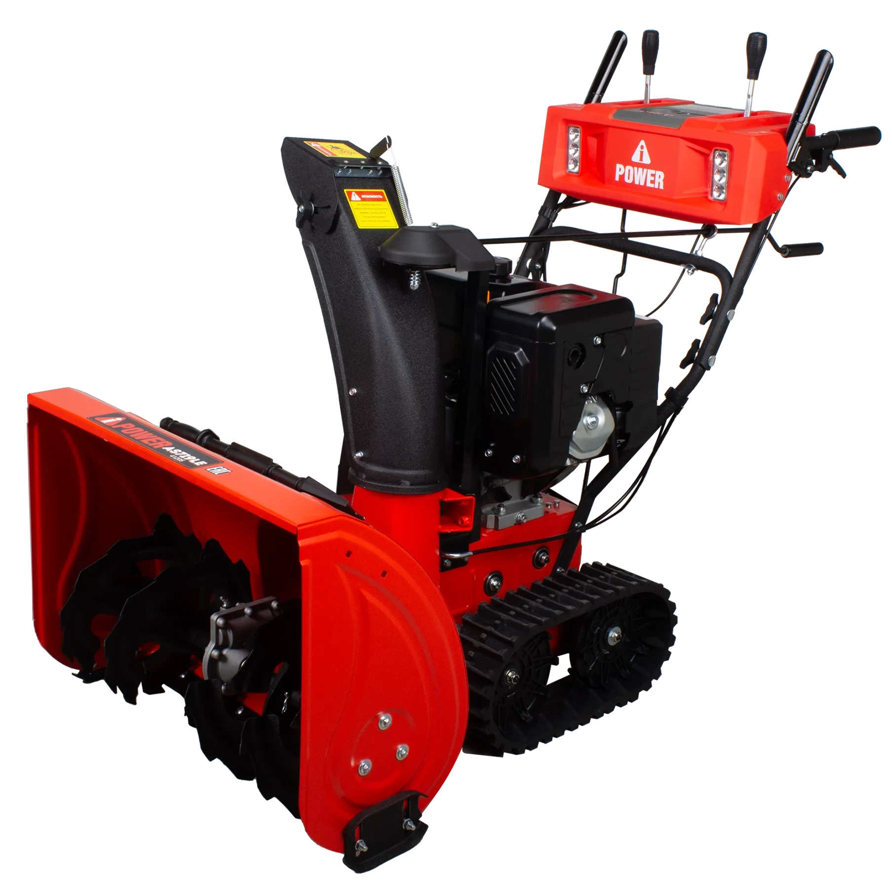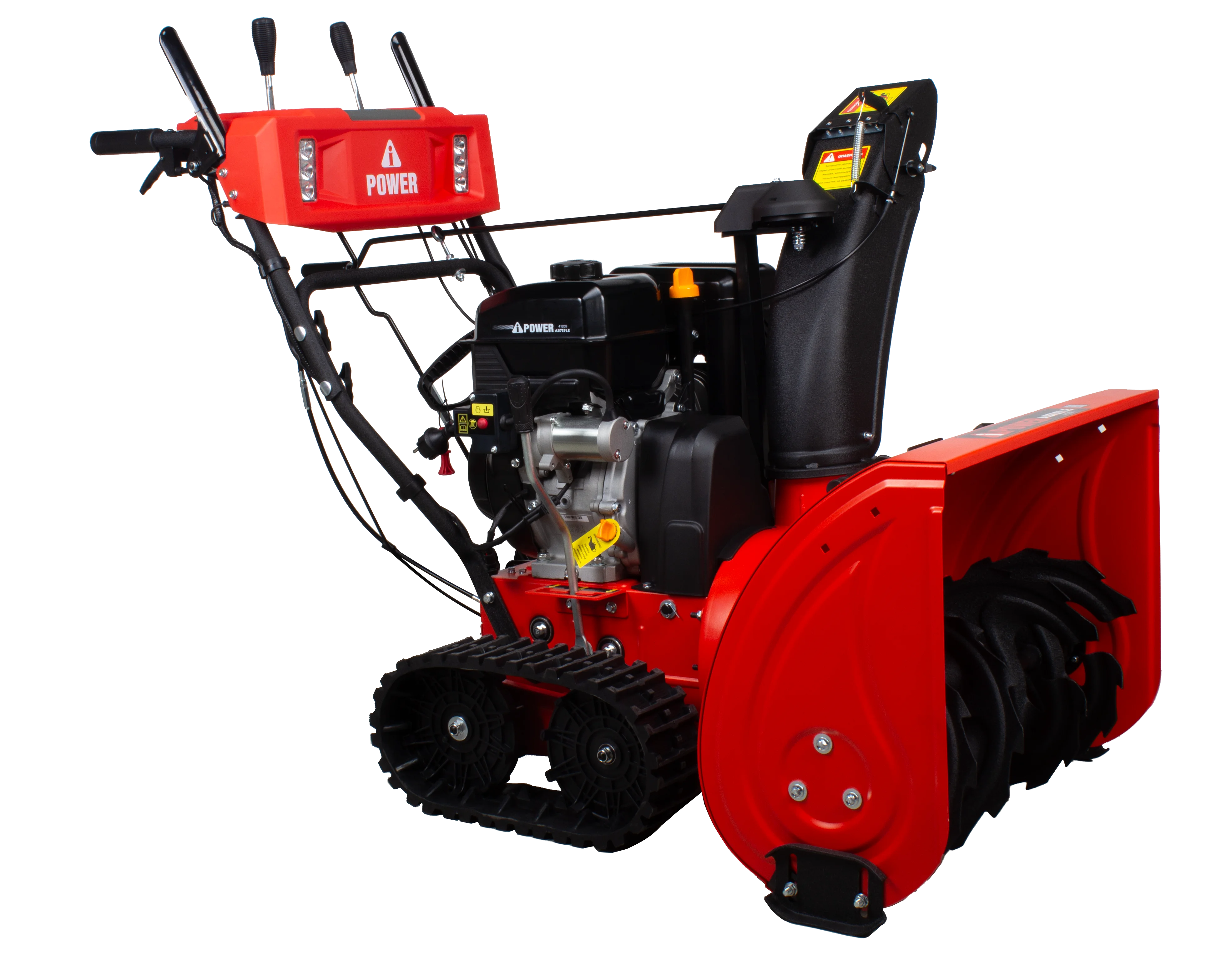 Бензиновый самоходный гусеничный снегоуборщик A-iPower AS719LE - идеальное решение для очистки от снега небольших и средних площадей придомовых территорий загородных домов, парковок, торговых уличных площадей, дворов жилых комплексов и в других местах, где требуется оперативная и качественная уборка снега. - Резиновые гусеницы с протектором не скользят. - Желоб легко поворачивается с помощью рукоятки, угол поворота 190 градусов. - Самоходный механизм сильно облегчает работу. - Возможность работы как на ровной поверхности с твердым покрытием, так и на неровных например гравийных поверхностях. - Фары ближнего света облегчают работу в ночное время. - Запускается электростартером от вилки 220В, незаменимая функция в морозы. - Подогрев ручек делает работу со снегоуборщиком комфортной. - Стандартная гарантия 2 года + 2 года расширенной гарантии при покупке в авторизованном магазине. Преимущества и описание элементов: - Максимальная ширина захвата 71 см; - Максимальная высота захвата 54 см; - Шестерни червячного редуктора выполнены из бронзы; - Крепкий шнек прослужит много лет; - Двигатель 302 куб см рассчитан на бесперебойную работу при температуре -35С; - Мощность двигателя 9 л.с.; - Скорости: 6 передних/2 задние; - Непрерывная работа до 3 часов; - Дальность выброса снега до 12 м; - Счётчик моточасов на панели; - Подогрев ручек с выведенным выключателем.